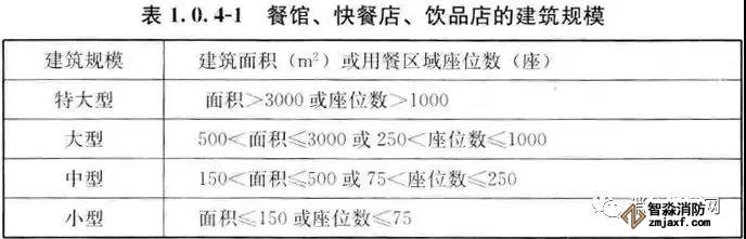 3、飲食建筑按建筑規模可分為特大型、大型、中型和小型,并應符合表1.0.4-1及表1.0.4-2的規定。